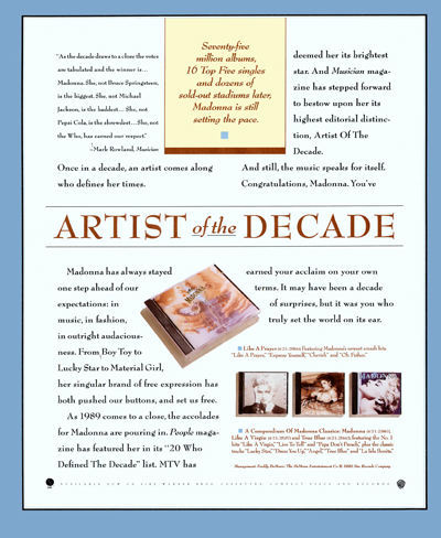 Billboard USA December 9 1989 Artist Of The Decade Photographed by Herb Ritts
