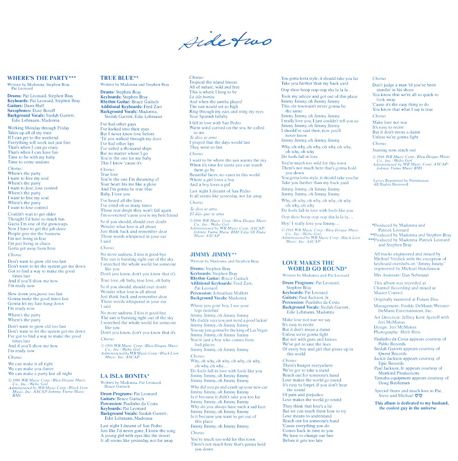 1986 True Blue Japan Picture Disc Vinyl P-15004 Photographed by Herb Ritts